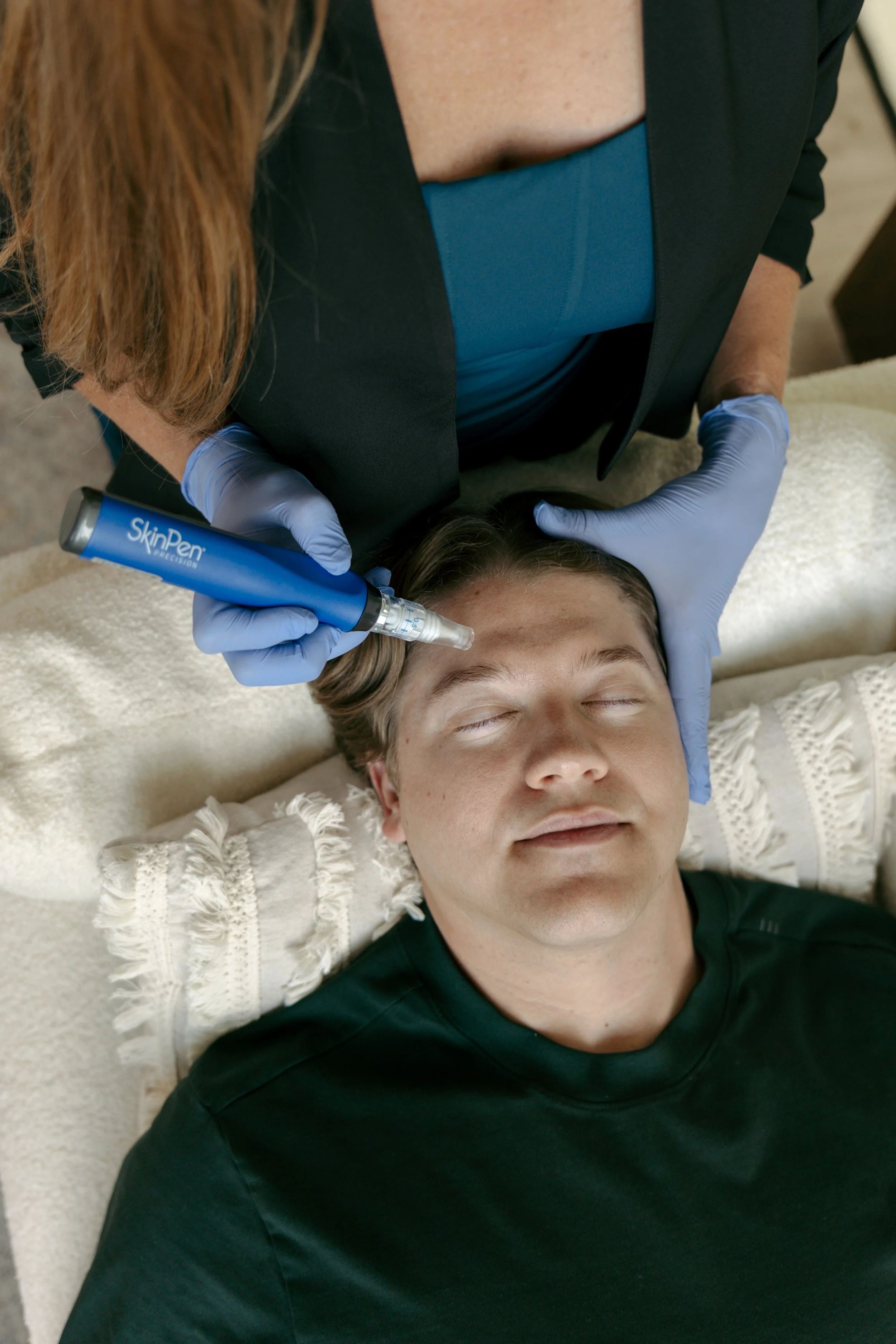 Microneedling uses a handheld device equipped with extremely sharp, sterile needles to puncture the skin and stimulate collagen production.